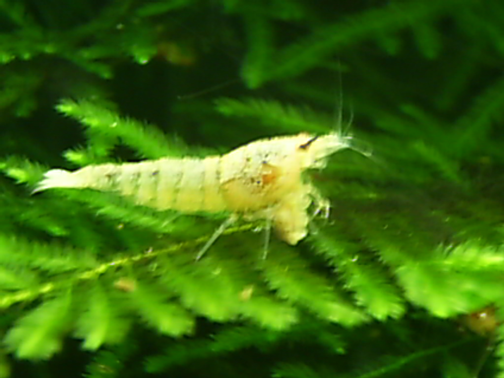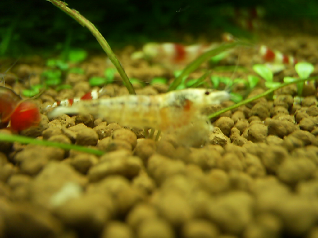 我家の水槽にはもともと、白いエビちゃんはいなかったんですけど、買い足したエビちゃんの中に